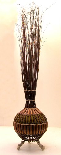 Individual Ethnic Design Floor Standing Lamp Finished In Chocolate Brown With Decorative Beads.