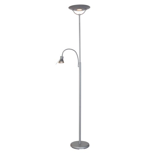 Father and Son floor lamps are a fantastic way to light any living areas or just use the adjustable arm to light up the reading light and enjoy your favourite books. This father and son light is in a painted silver metal finish and the two light sources can be operated separately. The top light or 'father' is operated by a sliding foot dimmer to control the exact amount of light emitted and the 'son' or reading light works off a foot on/off switch. This product is supplied with 2 bulbs, a 300w linear halogen bulb and a 40w GU10 halogen bulb.